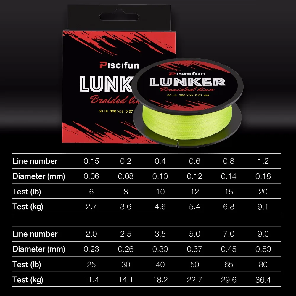Product Name: Piscifun Lunker 274M Niederlande PE Fiber Geflochtene Angelschnur 0,06 0,5mm 4 Stränge 6 80lb Multifilament Starke Angeln linie