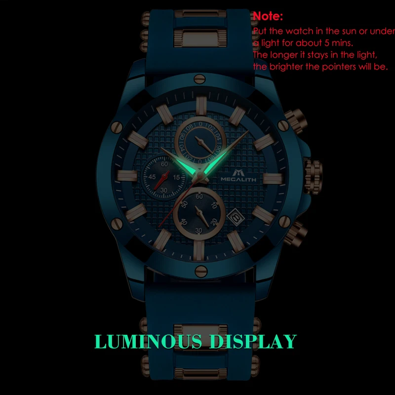 Product Name: MEGALITH Männer Quarz Sport Uhr Mit Wasserdichte Analog Chronograph Rubber Strap Militär Uhren Mann Uhr Horloges Mannen