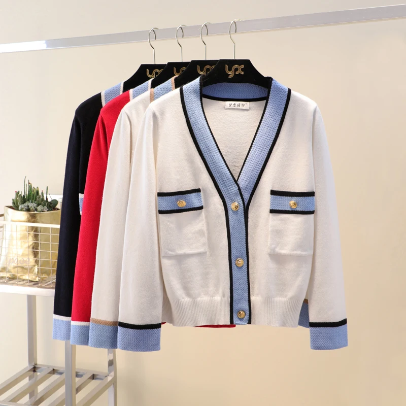. (31% Rabatt) Kaufen Günstig Luxus Designer Marke Gestrickte Pullover für Frauen V Neck Kontrast Farbe Tasten Strickjacke Pullover Preise Online.