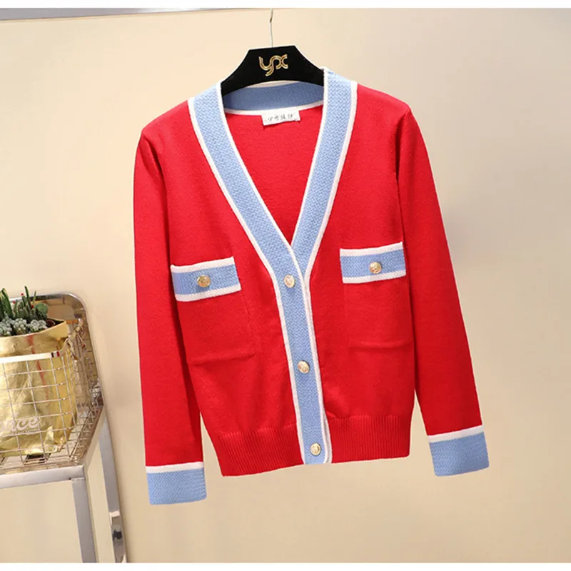 Special Offer Luxus Designer Marke Gestrickte Pullover für Frauen V Neck Kontrast Farbe Tasten Strickjacke Pullover Discount 31% Today!