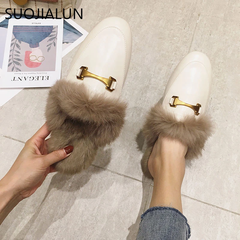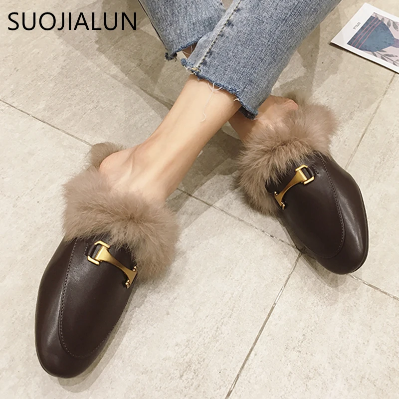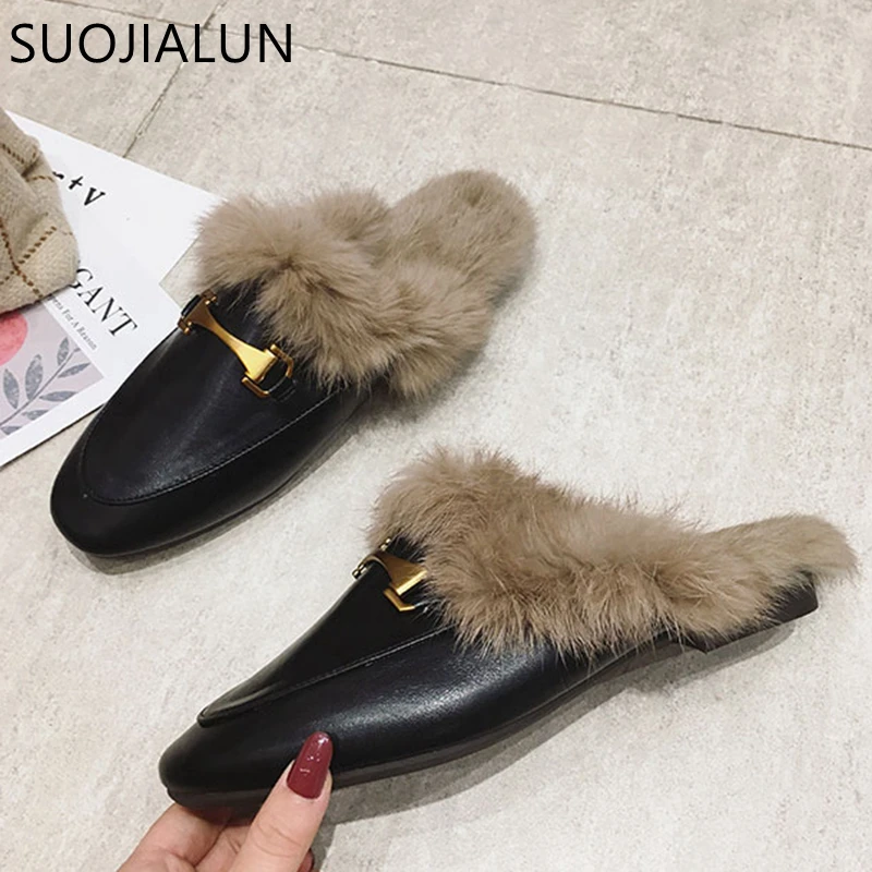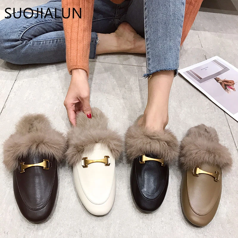 Special Offer SUOJIALUN Frauen Flache Hausschuhe Slip Auf Maultiere Marke Designer 2019 Mode Luxus Niet T strap Rutschen Slip Auf Loafers maultiere Discount 41% Today!