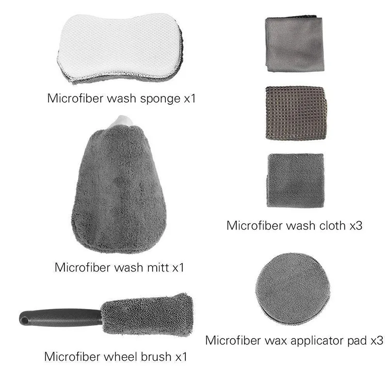 Product Name: Neue 9Pcs Mikrofaser Auto Waschen Reinigung Werkzeuge Set Handschuhe Handtücher Applikator Pads Schwamm Auto Pflege Kit Rad Pinsel Auto reinigung Kit